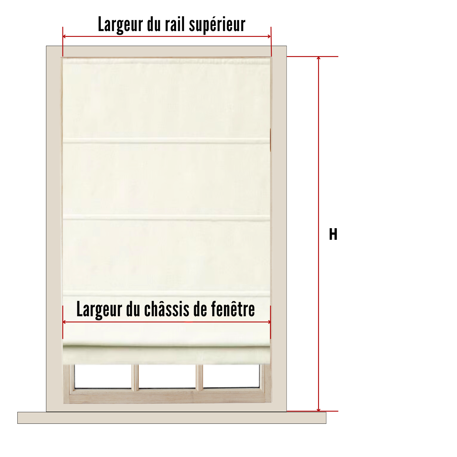 - Largeur de commande = largeur du châssis de la fenêtre moins 1 CM.