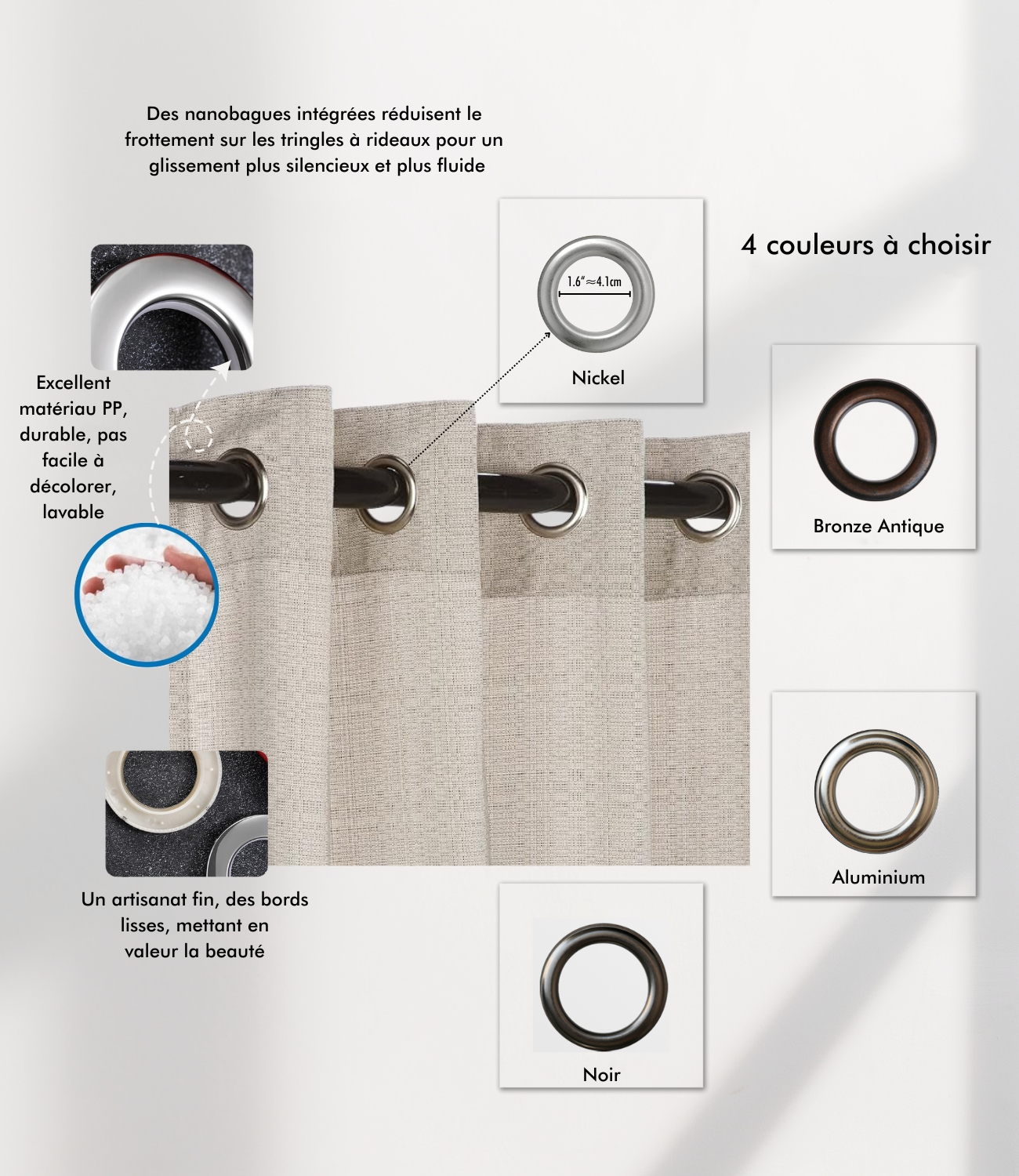 - Grâce à une bonne aération, ces rideaux sont résistants aux rayons du soleil et vous tiennent au frais toute l'année. Le lin, connu pour ses vertus naturelles, est parfait pour les allergistes ou les personnes sensibles.