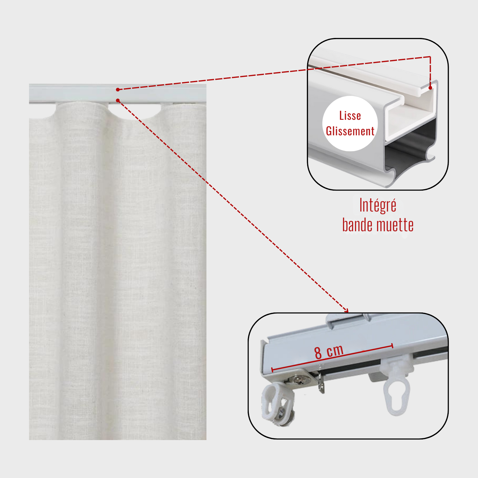 Skyler Rideau en Lin Occultant à Plis Vague avec Kit de Rail