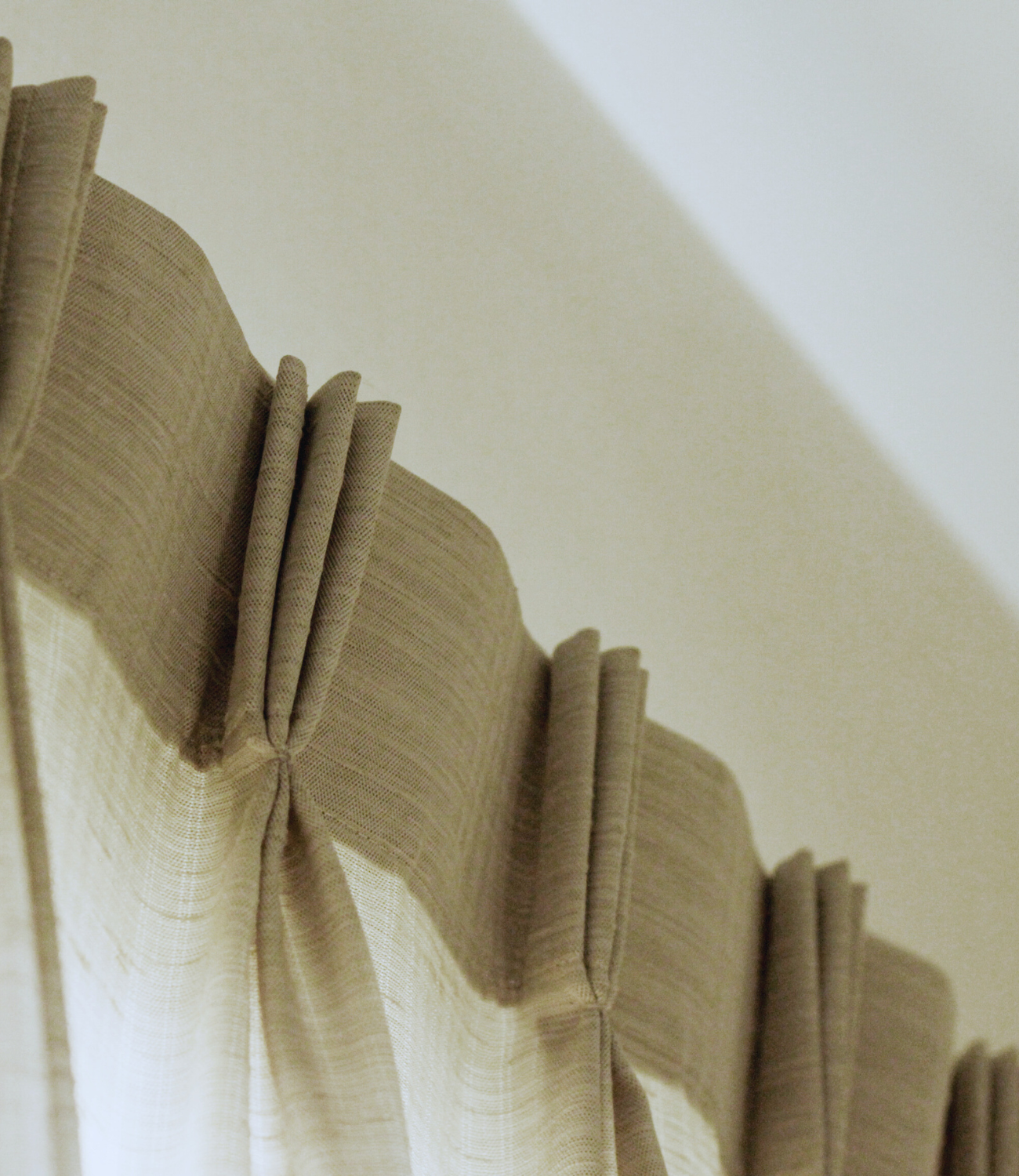 - Entretien des plis et repassage :Le linge a tendance à se froisser. À la réception de vos panneaux, il se peut qu'un repassage soit nécessaire. Le repassage peut se faire avec ou sans vapeur, en utilisant la température pour le lin (moyenne-haute). Une fois repassés, les panneaux conserveront un aspect sans plis.