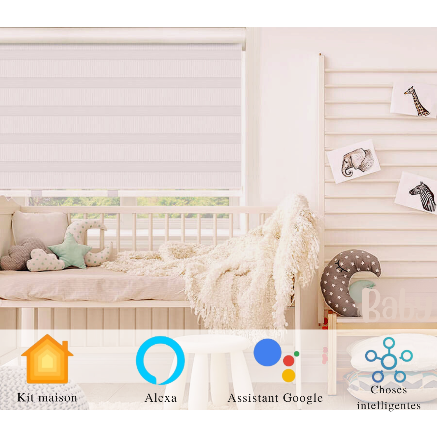 - Dispose des moteurs les plus silencieux disponibles, offrant une esthétique épurée sans chaînes ni cordons de commande.